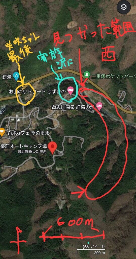 山の中の600メートルてかなり遠いな