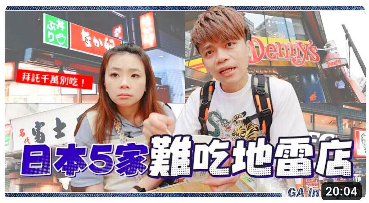 「日本の超マズい飲食チェーン地雷店5選」と題した動画を投稿した台湾YouTuberに非難が殺到し、謝罪に追い込まれた。NOWnewsや中時新聞網など、複数の台湾メディアが報じている。