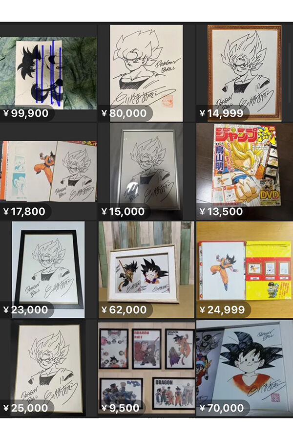 漫画『ドラゴンボール』などで知られる漫画家の鳥山明さんが3月1日に急性硬膜下血腫により死去したことが明らかになってから3日が経過。フリマアプリなどでは鳥山さんのサイン入り色紙やイラストなどが多数出品されている。