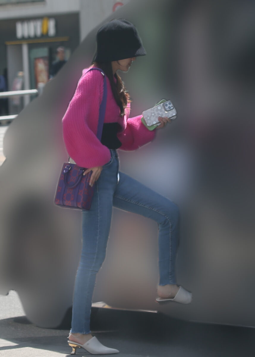なんかイメージと違うな赤こんな身体のラインが見えるパンツにパンプスとは