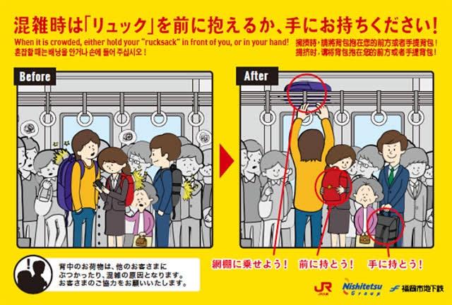根本的なマナーは荷物を他人にぶつけて迷惑かけないよう気を付けましょうだろ