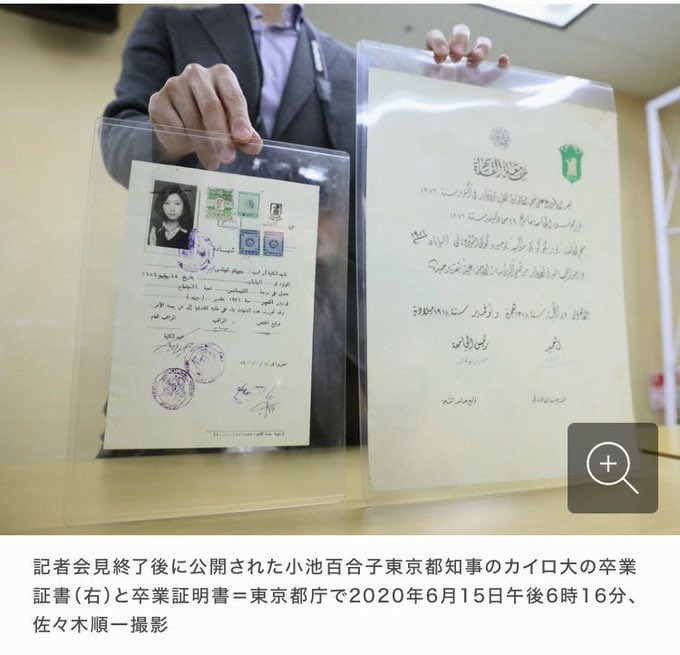 小池都知事は卒業証書をきちんと公開しており、カイロ大学も卒業を認めています