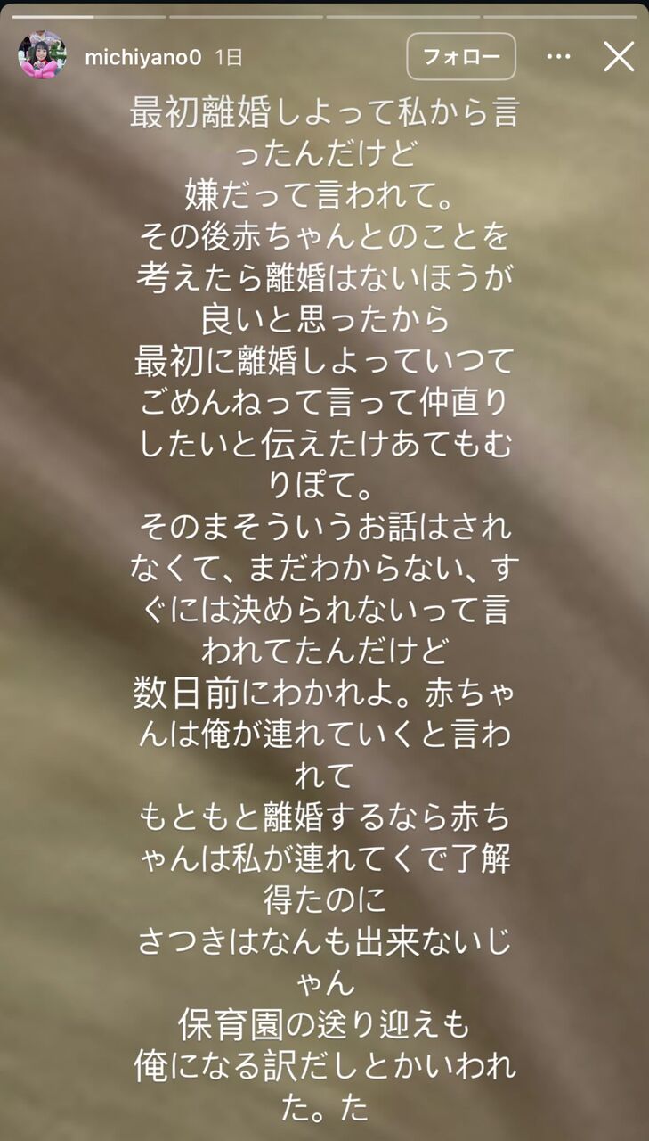 4年前には前夫との間にできた子を死産、離婚の1年後の2023年3月12日に現在の夫と知り合い、娘を出産したことなどをYouTubeで報告。
