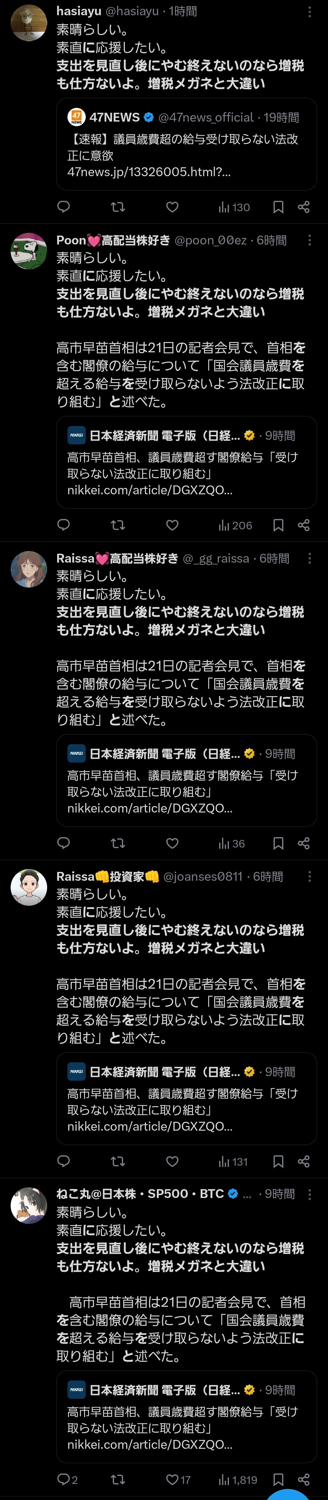 メディア言論人などが高市を異様に持ち上げる。
